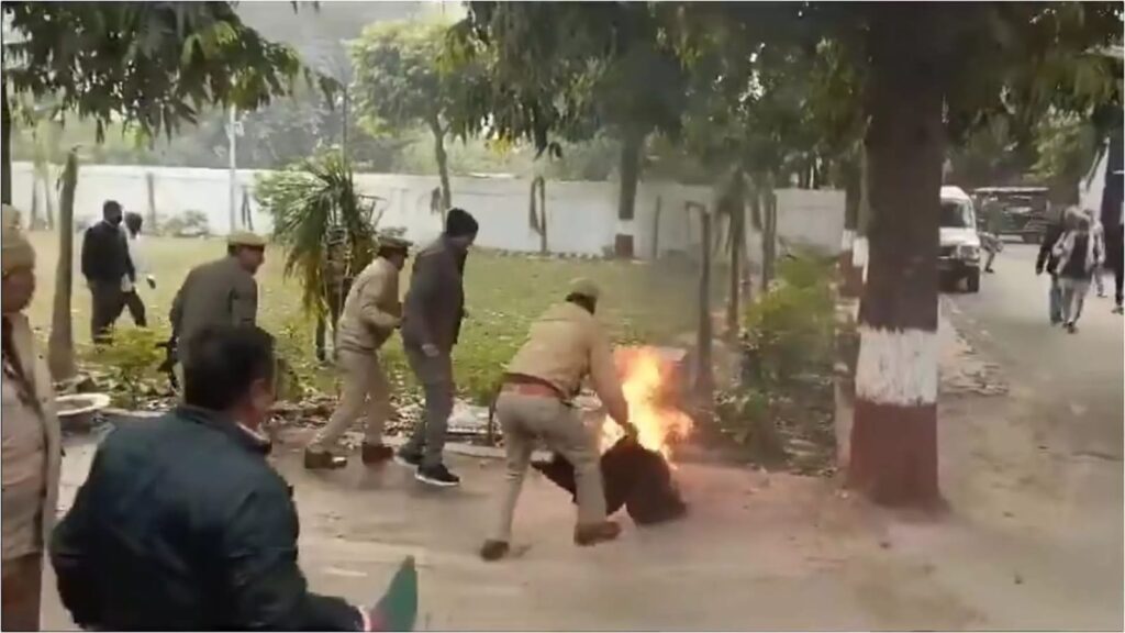 उत्तर प्रदेश : जिला बदायूं में SSP दफ्तर के गेट पर गुलफाम ने खुद को आग लगाई। पुलिस ने आग बुझाकर हॉस्पिटल में भर्ती कराया।
