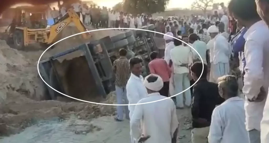 गुजरात : बनासकांठा के थराद नेशनल हाइवे पर एक बड़ा हादसा हो गया. जहां खेंगरपुरा गांव के पास रेत से भरा एक डम्पर पलट गया. जिससे सड़क के साइड में मजदूरी करने वाले 4 मजदूरों की मौत हो गई. सूचना पर पहुंची पुलिस ने शवों को कब्जे में लेकर पोस्टमार्टम के लिए भेजवा दिया है. वहीं, डम्पर मालिक के खिलाफ भी मामला दर्ज करते हुए जांच शुरू कर दी है. पुलिस ने बताया कि सड़क के साइड में मजदूरी कर रही तीन महिलाओं और एक बच्चे की डंपर पलटने से मौत हुई है. घटना के बाद लोगों ने राहत कार्य शुरू करते हुए मृतकों के शवों को जीसीबी के माध्यम से खोदकर बाहर निकलवा लिया गया है. साथ ही शवों को पोस्टमार्टम के लिए भी भेजवा दिया गया है।