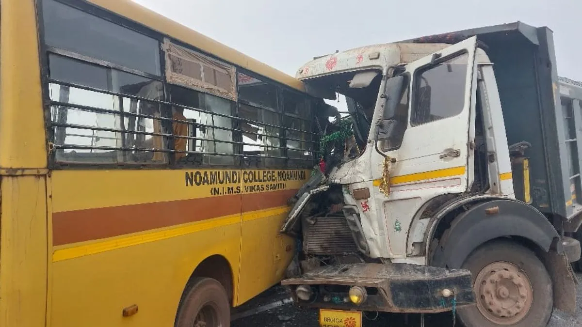 जगन्नाथपुर/जैंतगढ़ : जगन्नाथपुर थाना क्षेत्र अंतर्गत रामतीर्थ नदी के समीप मनिकपुर गांव के सामने शनिवार सुबह एक निजी स्कूल बस और हाईवा के बीच जोरदार सीधी टक्कर हो गई। हादसा सुबह करीब 7 से 8 बजे के बीच होने की बात सामने आई है। घटना के समय इलाके में घना कुहासा छाया हुआ था, जिसके कारण विजिबिलिटी बेहद कम थी। प्रारंभिक अनुमान है कि कुहासे ने ही दुर्घटना को जन्म दिया। टक्कर इतनी भीषण थी कि बस और हाईवा दोनों के आगे का हिस्सा बुरी तरह क्षतिग्रस्त हो गया। इस हादसे में दोनों वाहनों के चालक गंभीर रूप से घायल हो गए। वहीं बस में सवार निजी स्कूल के कई छात्र भी घायल बताए जा रहे हैं।