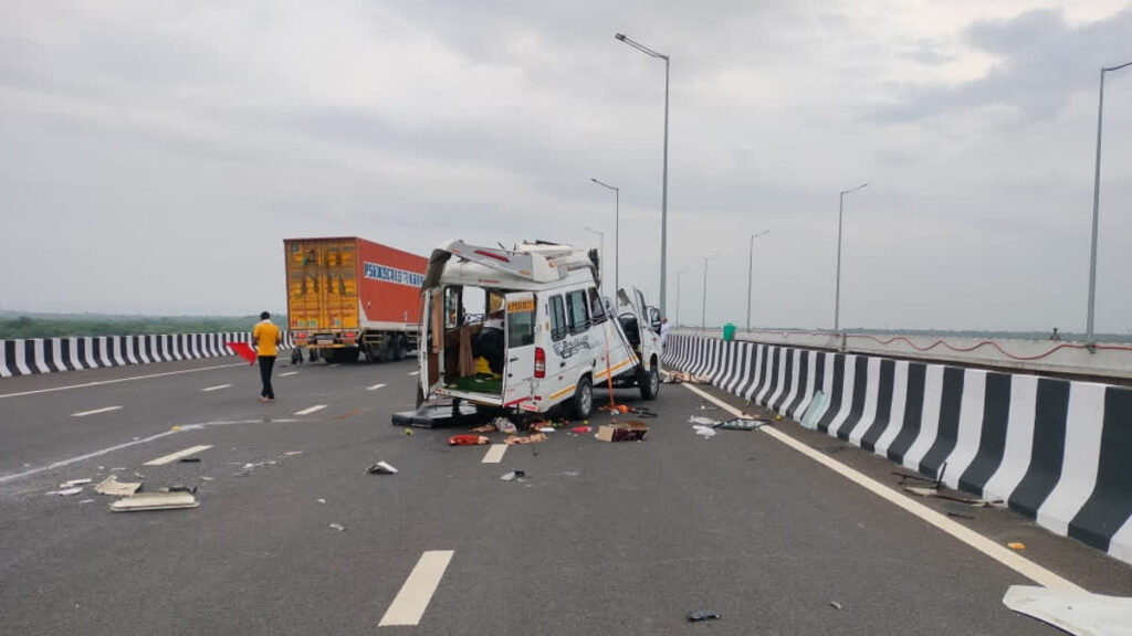 तीन की मौके पर मौत : घटनास्थल पर सबसे पहले पहुंचे बूढ़ादीत थाने के हेड कांस्टेबल शेर मोहम्मद ने बताया कि दो वाहनों में भिड़ंत का मामला है, लेकिन मौके पर एक वाहन मौजूद नहीं था. वहां मिला टेंपो ट्रैक्स वाहन पीछे से अन्य वाहन में घुसा. इसके चलते पूरी तरह से क्षतिग्रस्त हो गया. दुर्घटना में सुरेश सोनी, गीता सोनी और अनिल की मौके पर ही मौत हो गई थी, जबकि बृजेश को देईखेड़ा अस्पताल से कोटा रेफर किया गया, जहां रास्ते में दम तोड़ दिया. मामले की सूचना मिलने पर पुलिस पहुंची. एक्सप्रेसवे की एंबुलेंस भी आई, जिससे घायलों व मृतकों को तत्काल पास के बूंदी जिले के देईखेड़ा अस्पताल ले गए. गाड़ी में बच्चों को मिलाकर करीब 15 लोग सवार थे. जिनमें प्रीतिका, सानिया, कनिषा, तनुज, संजू, सीमा, प्रमोद, मनोज व ममता घायल हुए हैं.