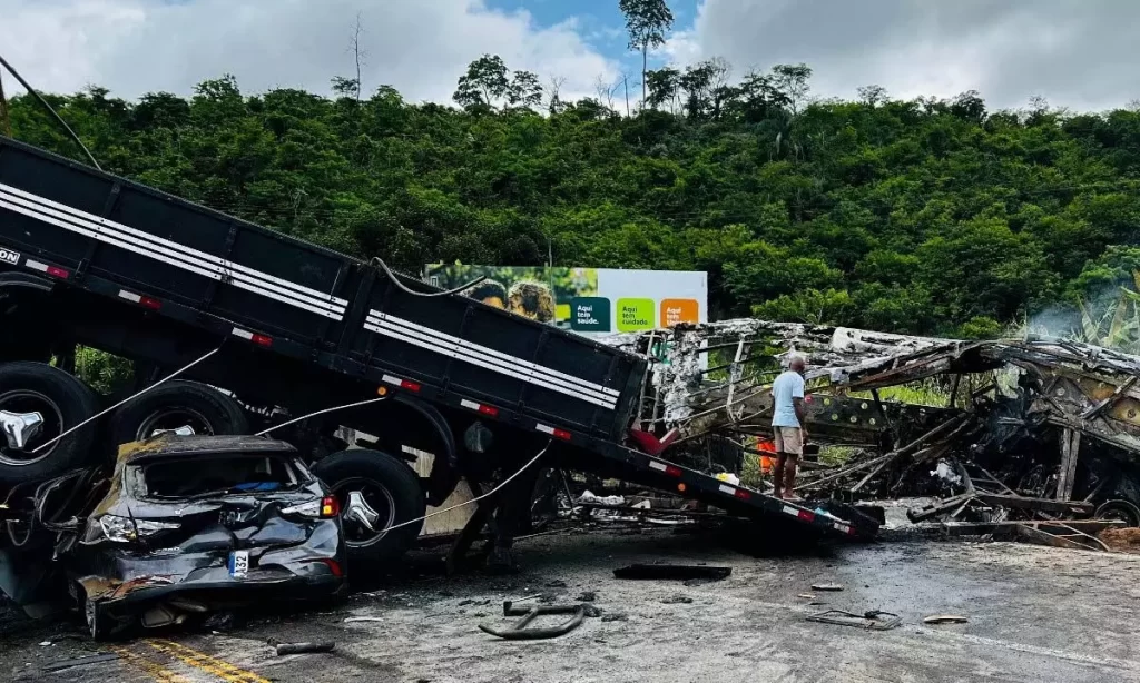 BRAZIL: ब्राजील में बस और ट्रक के टक्कर में कम से कम 38 लोगों की मौत हो गई। यह हादसा मिनस गेरैस के तेओफिलो ओटोनी शहर के पास हुआ। मीडिया रिपोर्ट्स के मुताबिक, हादसे में 13 लोग घायल भी हुए हैं, जिन्हें स्थानीय अस्पतालों में भर्ती कराया गया है। बस साओ पाउलो से रवाना हुई थी और इसमें 45 यात्री सवार थे। एक कार भी इस हादसे में बस से टकराई, लेकिन उसमें सवार तीन लोग सुरक्षित बच गए। आसपास के लोगों ने बताया कि बस का टायर फटने से ड्राइवर ने कंट्रोल खो दिया और बस ट्रक से जा टकराई। वहीं, कुछ लोगों ने कहा कि एक बड़ा पत्थर (ग्रेनाइट ब्लॉक) बस से टकराया था। हादसे के सही कारणों की जांच की जा रही है।