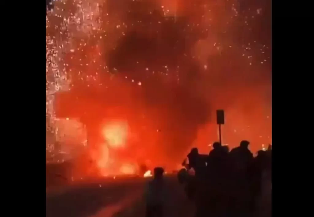 एंबुलेंस में धमाका इतना तेज था कि इसके असर से आसपास के घरों की खिड़कियां तक टूट गईं। हालांकि हादसे में किसी के घायल होने की खबर नहीं है। यह घटना जलगांव के दादावाड़ी इलाके के नेशनल हाइवे पर हुई। यह एंबुलेंस गर्भवती महिला को लेकर एर्डेनॉल सरकारी स्कूल से जलगांव के जिला अस्पताल जा रही थी। एंबुलेंस ड्राइवर ने अचानक देखा कि इंजन से धुआं निकल रहा है। इसके बाद वह खुद बाहर निकल गया और उसमें बैठे अन्य लोगों को भी भागने को कहा। इसके बाद ड्राइवर ने आसपास जा रहे पैसेंजर्स को भी आगाह किया। इसके कुछ ही मिनट के बाद एंबुलेंस में आग लग गई। फैलते-फैलते आग एंबुलेंस के ऑक्सीजन टैंक तक पहुंच गई और अचानक काफी तेज धमाका हुआ। वीडियो में भी धमाके की तेज आवाज सुनाई दे रही है।
