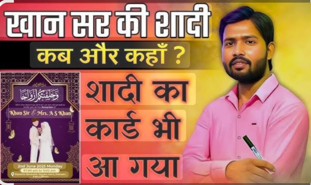 सूत्रों के मुताबिक, खान सर ने 7 मई को ए.एस. खान नाम की युवती से शादी की है. बताया जा रहा है कि दुल्हन बिहार से ही हैं और इस शादी को बेहद निजी रखा गया था. खान सर की ओर से अब 2 जून को पटना में रिसेप्शन पार्टी का आयोजन किया जाएगा, जिसमें करीबी लोग और शुभचिंतक शामिल होंगे. खान सर देशभर में अपने अनोखे पढ़ाने के अंदाज और समाजिक मुद्दों पर साफ बोलने के लिए मशहूर हैं. उनकी शादी को लेकर पहले से कोई औपचारिक जानकारी नहीं दी गई थी, लेकिन अब जब उन्होंने खुद यह बात सार्वजनिक की है, तो सोशल मीडिया पर भी उनके प्रशंसक उन्हें बधाइयां दे रहे हैं।