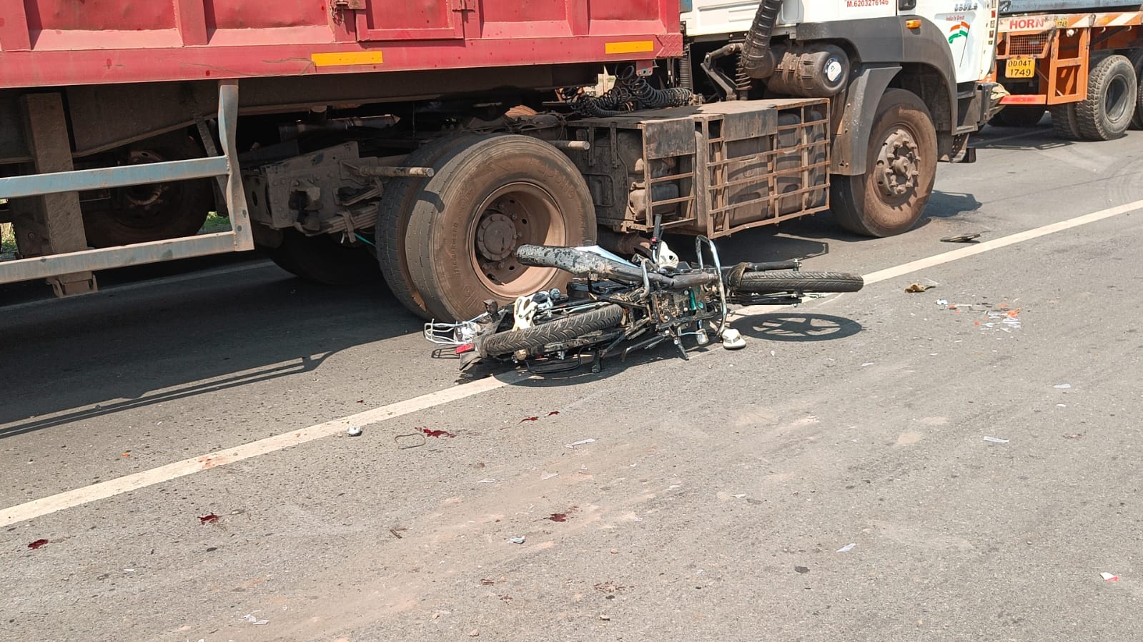 सरायकेला-खरसावां, चांडिल : चांडिल न्यू बायपास पर बुधवार को एक दर्दनाक सड़क हादसे में एक युवक की मौके पर ही मौत हो गई, जबकि दो अन्य युवक गंभीर रूप से घायल हो गए। घायलों का इलाज अस्पताल में चल रहा है, जहां उनकी हालत नाजुक बनी हुई है. जानकारी के अनुसार, भालू कोचा और सुकसारी के बीच तेज रफ्तार ट्रेलर ने बाइक सवार तीन युवकों को जोरदार टक्कर मार दी। टक्कर इतनी भीषण थी कि ट्रेलर बाइक को करीब 100 मीटर तक घसीटते हुए ले गया। हादसे के बाद घटनास्थल पर भयावह दृश्य देखने को मिला। मृत युवक का शव क्षत-विक्षत अवस्था में सड़क पर पड़ा मिला।