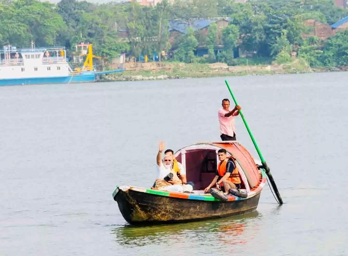 हुगली नदी के भ्रमण के दौरान पीएम मोदी हाथ में कैमरा थामे हुए थे। उन्होंने हुगली के तट से भी कुछ और शेयर कीं, जहां वे लोगों से मिलते हुए नजर आए। पीएम मोदी ने नदी के तट पर घूमने वाले लोगों का अभिवादन भी स्वीकार किया। इस दौरान उन्होंने नदी की फोटोग्राफी करने का भी प्रयास किया और विद्यासागर सेतु व हावड़ा ब्रिज का करीब से नजारा देखा। पीएम मोदी ने एक अन्य पोस्ट में लिखा, “मैंने इस नदी की तस्वीरें खींचने की भी कोशिश की। साथ ही मुझे विद्यासागर सेतु और हावड़ा ब्रिज की भी करीब से झलक देखने को मिली।”