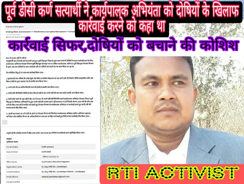 शिकायत के अनुसार, तत्कालीन उपायुक्त कर्ण सत्यार्थी ने मामले में दोषियों पर कार्रवाई के निर्देश दिए थे, लेकिन पेयजल विभाग के कार्यपालक अभियंता द्वारा अब तक कोई ठोस कार्रवाई नहीं की गई। इससे लापरवाही और जवाबदेही पर सवाल खड़े हो रहे हैं।