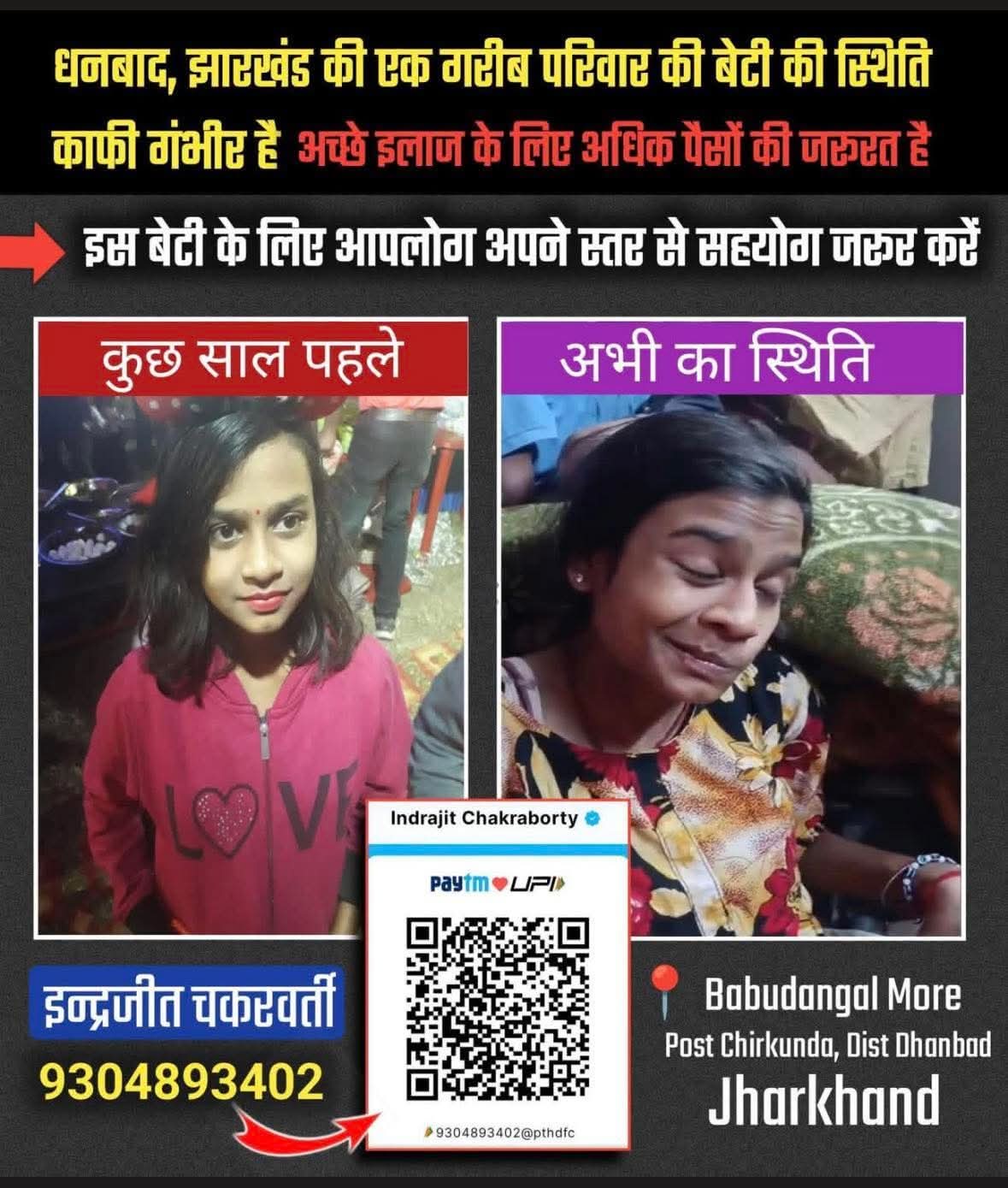 जमशेदपुर/रांची। समाज के सामने एक मार्मिक मामला सामने आया है, जहां एक मासूम बेटी नंदनी गंभीर बीमारी से जूझ रही है और उसके इलाज के लिए परिवार आर्थिक संकट से गुजर रहा है। जानकारी के अनुसार, नंदनी को ब्रेन अटैक जैसी खतरनाक बीमारी हो गई है, जिसके कारण उसकी स्थिति बेहद नाजुक बनी हुई है। बताया जाता है कि नंदनी के पिता इंदरजीत चक्रवर्ती एक साधारण और आर्थिक रूप से कमजोर परिवार से आते हैं। वे किसी तरह घर का खर्च चलाने के साथ-साथ अपनी बेटी का इलाज भी करवा रहे हैं, जिससे उन पर आर्थिक बोझ लगातार बढ़ता जा रहा है।
