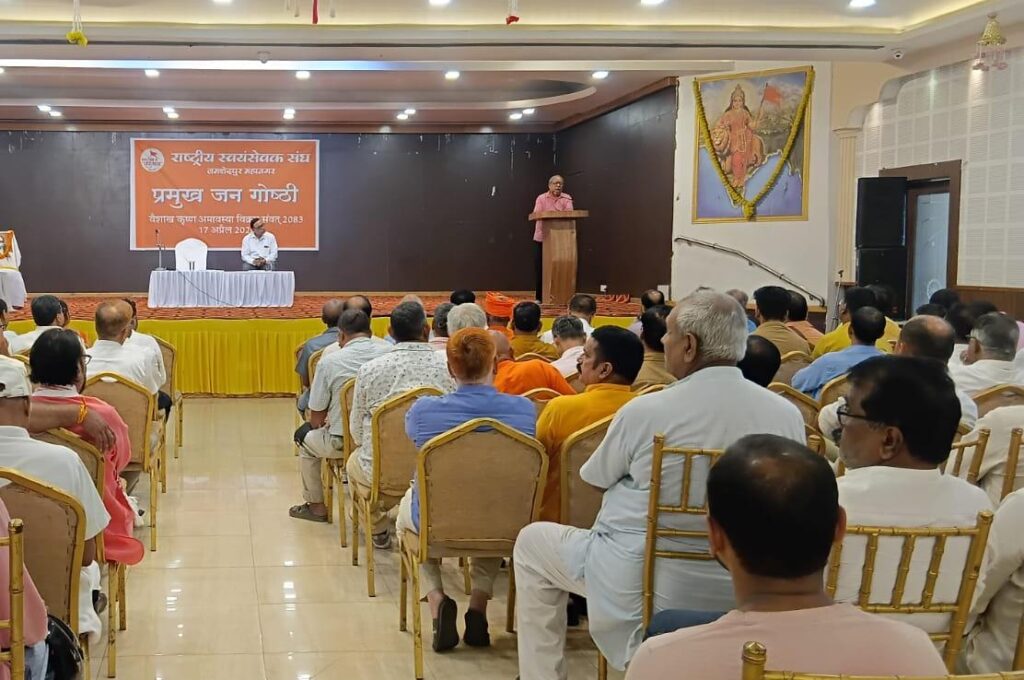 जमशेदपुर : राष्ट्रीय स्वयंसेवक संघ के शताब्दी वर्ष के उपलक्ष्य में शहर के तुलसी भवन सभागार में एक गरिमामयी प्रमुख जन गोष्ठी का आयोजन किया गया। कार्यक्रम में सामाजिक, शैक्षणिक एवं औद्योगिक क्षेत्रों से जुड़े अनेक गणमान्य नागरिक उपस्थित रहे।