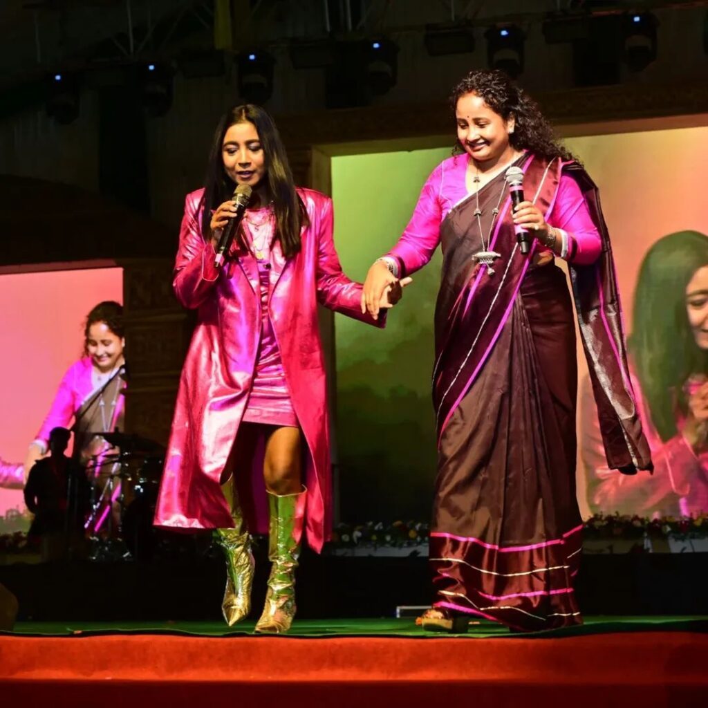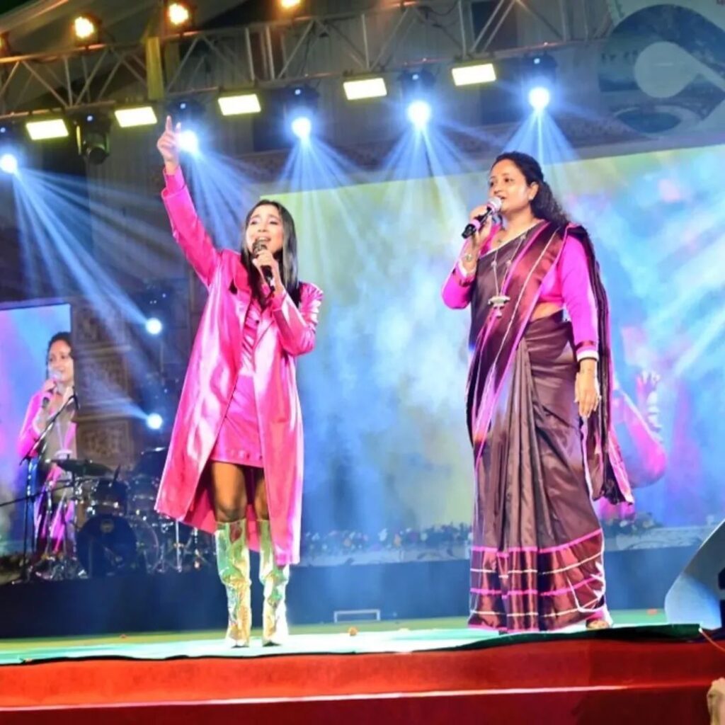 समारोह के दूसरे दिन संगीत की महफिल उस समय और ज्यादा खास हो गई जब बॉलीवुड की प्रसिद्ध प्लेबैक सिंगर शिल्पा राव अपनी दिलकश प्रस्तुति दे रही थीं. उनकी आवाज पूरे मोरहाबादी मैदान में गूंज रही थी और दर्शक पूरी तरह सुरों में डूबे थे. इसी बीच एक अनोखा और यादगार पल आया. विधायक कल्पना सोरेन भी मंच के सामने मौजूद दर्शकों के बीच से उठकर शिल्पा राव के साथ स्टेज पर पहुंच गईं. शिल्पा राव के लाइव परफॉर्मेंस का जादू इतना असरदार था कि कल्पना सोरेन अपने आप को रोक नहीं पाईं और उन्होंने मंच पर जाकर बॉलीवुड गीतों पर साथ में गाना शुरू किया. दोनों ने सुरों को मिलाते हुए बेहद सहज और आत्मीय तरीके से प्रस्तुति दी. यह दृश्य देखते ही दर्शकों में उत्साह की लहर दौड़ गई. मंच पर यह संगीत संगम इतना खूबसूरत था कि लोग लगातार तालियां बजाते हुए उनका हौसला बढ़ाते रहे।