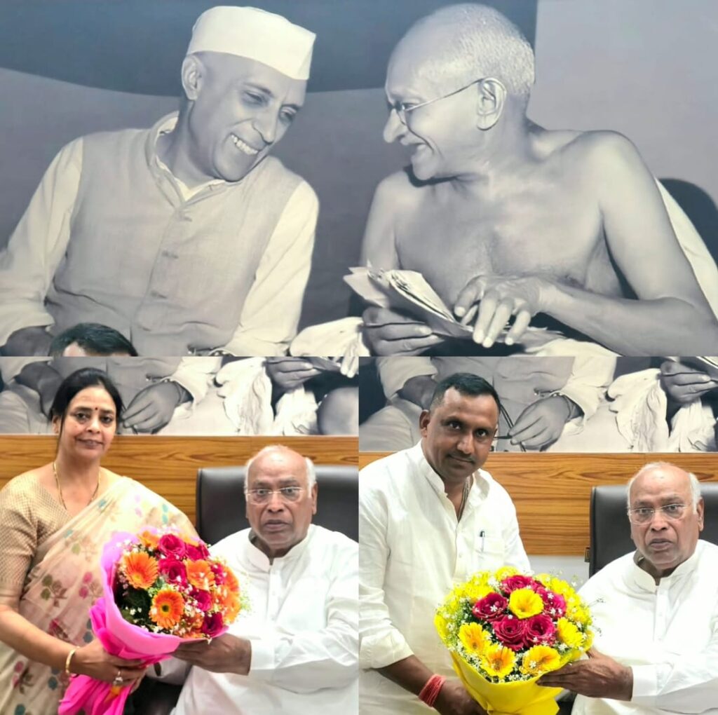 नई दिल्ली : मानगो नगर निगम की नव-निर्वाचित मेयर सुधा गुप्ता एवं वरिष्ठ कांग्रेस नेता एवं पूर्वमंत्री बन्ना गुप्ता ने आज कांग्रेस के राष्ट्रीय अध्यक्ष मल्लिकार्जुन खरगे से शिष्टाचार मुलाकात की। इस दौरान खड़गे ने दोनों नेताओं का गर्मजोशी से स्वागत किया और जीत की बधाई दी. मुलाकात के दौरान मानगो नगर निगम के विकास, शहर में बुनियादी सुविधाओं के विस्तार तथा जनहित से जुड़े विभिन्न विषयों पर चर्चा हुई।
