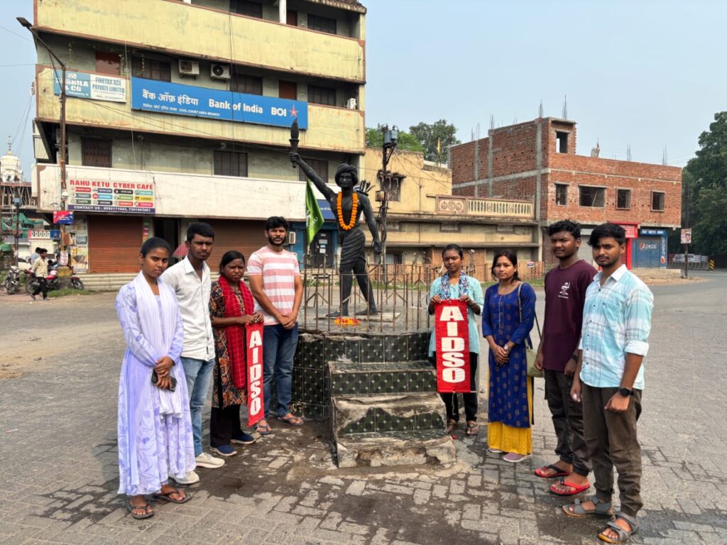 जमशेदपुर : ऑल इंडिया डेमोक्रेटिक स्टूडेंट्स आर्गेनाइजेशन जमशेदपुर नगर इकाई द्वारा उलगुलान के महानायक शहीद बिरसा मुंडा का 125 वीं शहादत वार्षिकी भुइयाडीह गोलचक्कर में मर्यादापूर्वक मनाया गया। सर्वप्रथम बिरसा मुंडा की मूर्ति पर माल्यार्पण प्रदेश कोषाध्यक्ष युधिष्ठिर कुमार द्वारा किया गया।