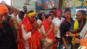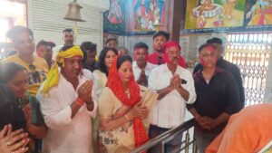 खुली जिपसी में बन्ना गुप्ता और सुधा गुप्ता अपने समर्थकों के साथ करीब दोपहर 1 बजे शिरोमन नगर स्थित भगवान शिव के मंदिर में पहुंचे और पूजा अर्चना की, उसके बाद डिमना रोड होते हुए बड़ा हनुमान मंदिर में पूजा अर्चना किया, फिर पारडीह होते हुए काली मंदिर में माँ काली की आराधना कर पुजारी बाबा से आशीर्वाद लिया, उसके बाद ओल्ड पुरुलिया रोड होते हुए साकची पहुंच शिव मंदिर में पूजा की, फिर कदमा रणकनी मंदिर में पूजा अर्चना कर आशीर्वाद लिया, जुलुस कदमा आवास पर जाकर खत्म हुआ।