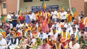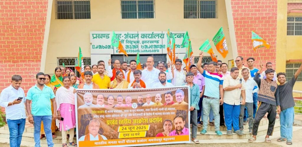 आक्रोश-प्रदर्शन को संबोधित करते हुए जमशेदपुर महानगर के जिलाध्यक्ष सुधांशु ओझा ने हेमंत सोरेन के नेतृत्व वाली झामुमो-कांग्रेस-राजद गठबंधन सरकार को आड़े हाथों लेते हुए जमकर हमला बोला। उन्होंने कहा कि राज्य सरकार की नीति और नीयत दोनों में जनहित का अंश नहीं दिखता। यह सरकार सिर्फ घोषणाओं और झूठे सपनों की राजनीति करती है, जबकि ज़मीनी हकीकत कुछ और है। आज पूरे प्रदेश में ध्वस्त विधि व्यवस्था, आकंठ भ्रष्टाचार, खनिज संसाधनों की लूट, हत्या, बलात्कार, और अपराधियों का राज कायम हो चुका है। आमजन असुरक्षित है, बहन-बेटियां डरी-सहमी हैं और अपराधी बेखौफ अपराध कर रहे हैं। कहा कि पूरे प्रदेश में शिक्षा और स्वास्थ्य जैसी मूलभूत सेवाएं बदहाल हैं। स्कूलों में शिक्षक, अस्पतालों में डॉक्टर और दवाइयां नहीं है। ईलाज और एम्बुलेंस के अभाव में गरीब दम तोड़ने को मजबूर हैं। आयुष्मान भारत जैसी जनकल्याणकारी योजना को ठप्प कर सरकार ने गरीब जनता की पीठ में छुरा घोंपा है। आज गरीबों के वृद्धा, विधवा और दिव्यांग पेंशन महीनों से बंद हैं। महिलाएं मईयां सम्मान राशि के नाम पर ठगी जा रही हैं। किसानों को धान के नाम पर छलावा मिला है। खेती का समय सिर पर है और किसान अपने पैसे के लिए दर-दर भटक रहे हैं।