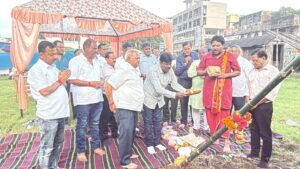 जमशेदपुर : राजस्थान सार्वजानिक पूजा कमिटी, फूड प्लाजा गोलमुरी के होने वाले दुर्गा पूजा के भव्य पूजा पंडाल का भूमि पूजन विधि विधान के साथ भाजपा के पूर्व जिला अध्यक्ष दिनेश कुमार, पूजा कमिटी के अध्यक्ष कमल लड्डा, समाजसेवी शिव शंकर सिंह और सत्यनारायण अग्रवाल, केंद्रीय दुर्गा पूजा कमिटी के कार्यकारी अध्यक्ष आशुतोष सिंह के द्वारा पंडित सोमेन मुखर्जी के देखरेख में संपन्न किया गया, पूजा कमिटी के अध्यक्ष कमल लड्डा ने बताया की 1982 से यह पूजा गोलमुरी में निवास करने वाले मारवाड़ी समाज के लोगो के द्वारा राजस्थानी विधि विधान के साथ संपन्न की जाती है यह पूजा की खासियत ये है की यहां शंकर पार्वती की पूजा की जाती है।