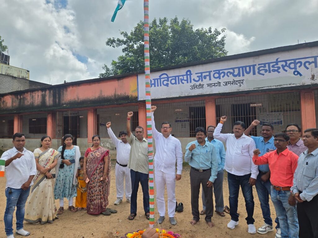 जमशेदपुर : मानगो उलीडीह स्थित आदिवासी जनकल्याण उच्च विद्यालय के प्रांगण में आजादी के 79 वें वर्षगांठ के अवसर पर विद्यालय कमेटी के सदस्य विकास सिंह ने राष्ट्रध्वज फहराकर झंडे को सलामी दिया। आदिवासी जन कल्याण उच्च विद्यालय में प्रत्येक वर्ष 15 अगस्त के अवसर पर बच्चों के द्वारा सांस्कृतिक कार्यक्रम एवं खेलकूद प्रतियोगिता का आयोजन किया जाता है परंतु इस बार दिशाेम गुरु शिबू सोरेन की मृत्यु के कारण किसी प्रकार के सांस्कृतिक कार्यक्रम एवं खेलकूद प्रतियोगिता का आयोजन नहीं किया गया । सादे समारोह में आयोजित झंडोत्तोलन कार्यक्रम हुआ। सामूहिक रूप से राष्ट्रगान गाकर एवं बच्चों के बीच मिठाई का वितरण किया गया बच्चों को संबोधित करते हुए