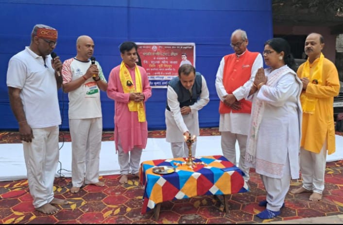 जमशेदपुर : पतंजलि योगपीठ ट्रस्ट हरिद्वार के तत्वावधान में आठ दिवसीय नि:शुल्क पतंजलि योग शिविर का भव्य शुभारंभ वैदिक मंत्रोचार और दीप प्रज्वलन के साथ हुआ। उद्घाटन समारोह में पतंजलि योगपीठ हरिद्वार के सुप्रसिद्ध आयुर्वेद चिकित्सक डॉक्टर मनीष डूड़िया, स्थानीय जिला पार्षद डॉक्टर परितोष कुमार, भारत स्वाभिमान न्यास के जिला प्रभारी अजय कुमार झा, पतंजलि योग समिति के जिला प्रभारी कृष्ण कुमार, महिला पतंजलि सह जिला प्रभारी गौरी कर, सोशल मीडिया प्रभारी नरेंद्र कुमार, यज्ञ प्रभारी आशुतोष कुमार झा, शिविर प्रभारी संगीता शर्मा, प्रखंड युवा प्रभारी अशोक शर्मा और शिविर के मुख्य संचालनकर्ता सुजीत शर्मा उपस्थित थे।