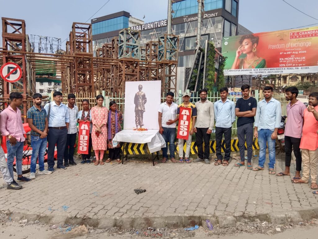 जमशेदपुर : ऑल इंडिया डेमोक्रेटिक स्टूडेंट ऑर्गेनाइजेशन जमशेदपुर नगर कमिटी की ओर से शहीद खुदीराम बोस के शहादत दिवस के अवसर पर मानगो गोलचक्कर में शहीद खुदीराम बोस की तस्वीर पर माल्यार्पण किया गया । सर्वप्रथम तस्वीर पर माल्यार्पण प्रदेश अध्यक्ष समर महतो द्वारा किया गया।