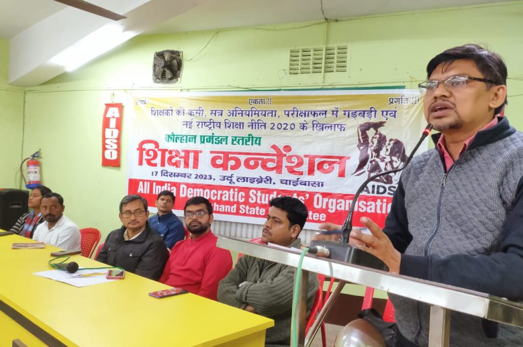 जमशेदपुर : आल इंडिया डेमोक्रेटिक स्टुडेंट्स झारखंड राज्य कमिटी की ओर से चाईबासा के उर्दू लाइब्रेरी हॉल में कोल्हान प्रमंडल शिक्षा कन्वेंशन का आयोजन किया गया। संगठन के अखिल भारतीय सचिव मंडली सदस्य सह प्रदेश अध्यक्ष समर महतो ने सभा को संबोधित किया।