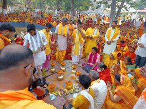 कलश यात्रा के सबसे आगे टैंकर के द्वारा पूरे रास्ते स्वच्छ एवं निर्मल जल का छिड़काव किया गया। कलश यात्रा में परमश्रद्धेय गुरुदेव श्री श्री 108 जय मंगला बाबा, यज्ञाचार्य लाल मोहन शास्त्री, जमशेदपुर पश्चिम के विधायक सरयू राय, जम्मू वाले बाबा, आयोजन समिति के मुख्य संयोजक अनिल ठाकुर, समाजसेवी शिवशंकर सिंह, भाजपा नेता रामबाबू तिवारी समेत स्थानीय निवासी मुख्यरूप से शामिल हुए। कलश यात्रा में श्रद्धालुओं का उत्साह देखते ही बन रहा था। इससे पहले, बिरला में मंदिर में एकत्रीकरण के पश्चात कलश में पवित्र सुल्तानगंज के उत्तरवाहिनी गंगाजल भरा गया, जहां पुरोहितों द्वारा वैदिक मंत्रोच्चार से संकल्प के पश्चात कलश न्यू केबुल टाउन पहुँची। आयोजन स्थल पर बने पंच कुंडीय यज्ञशाला के चारों ओर कलशों को स्थापित किया गया। श्रद्धालुओं ने यज्ञशाला के चारों ओर परिक्रमा भी की। कलश स्थापना के पश्चात पंडित लाल मोहन शास्त्री के नेतृत्व में बनारस से आए 21 सदस्यीय आचार्यों ने यज्ञशाला में बेदी निर्माण सम्पन्न किया। शुक्रवार को पंचांग पूजन, मंडप प्रवेश एवं अरणी मंथन के माध्यम से अग्निदेव का आह्वान किया जाएगा। इसके बाद प्रतिदिन सुबह 9 बजे से दोपहर 12 बजे तक पूजन और दोपहर 2 बजे से शाम 5 बजे तक हवन का कार्यक्रम आयोजित होगा। वहीं, कलश यात्रा के उपरांत सभी श्रद्धालुओं के बीच प्रसाद का वितरण किया गया।