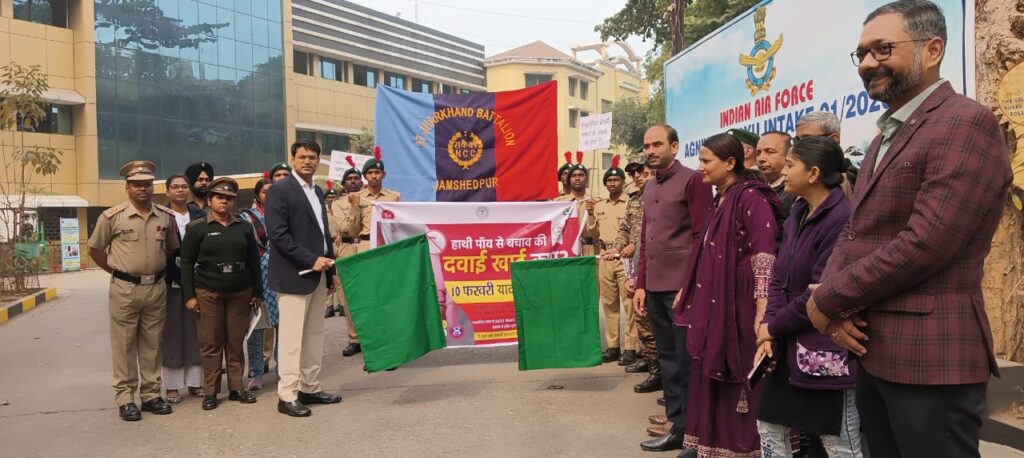 जमशेदपुर : फाइलेरिया उन्मूलन के लिए 10 से 25 फरवरी तक मास ड्रग एडमिनिस्ट्रेशन कार्यक्रम चलाया जायेगा। अभियान के प्रति जनजागरूकता को लेकर समाहरणालय परिसर से एनसीसी कैडर के द्वारा रैली निकाली गई जिसे जिला दण्डाधिकारी सह उपायुक्त श्री अनन्य मित्तल एवं एनसीसी के कमांडिंग ऑफिसर ने हरी झंडी दिखाकर रवाना किया।