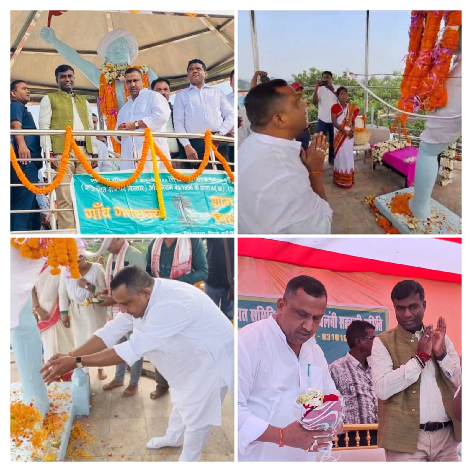 जमशेदपुर : धरती आबा भगवान बिरसा मुंडा की जयंती के अवसर पर माननीय मंत्री स्वास्थ्य, चिकित्सा शिक्षा, परिवार कल्याण एवं आपदा प्रबंधन विभाग श्री बन्ना गुप्ता, जिला दण्डाधिकारी सह उपायुक्त श्री मंजूनाथ भजन्त्री ने बिरसानगर स्थित भगवान बिरसा मुंडा की प्रतिमा पर माल्यार्पण एवं पुष्प अर्पित कर उन्हें नमन किया । साथ ही झारखंड राज्य स्थापना दिवस के अवसर पर राज्यवासियों को बधाई एवं शुभकामनाएं दी ।