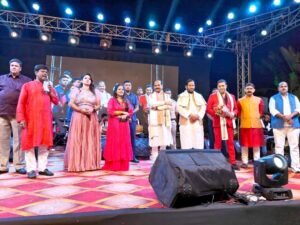 कार्यक्रम में सुप्रसिद्ध लोक गायिका निशा पांडेय, सुर संग्राम की विजेता एवं ख्याति प्राप्त गायिका ममता राउत एवं जमशेदपुर की उभरती गायिका स्नेहा मिश्रा व डेजी ठाकुर ने छठ लोकगीत एवं भक्ति गीतों से सभी लोगों का मन मोह लिया। गायिका निशा पांडेय ने जैसे ही गाना शुरू किया तो लोग उत्साह से भर गए और करतल ध्वनि से सरहाना करते हुए अभिनंदन किया। छठ पर्व से जुड़े गीत ‘छठी माई दे देतु ललनवा’ एवं ‘बहंगी उठायी मोदी जी- योगी जी’ समेत अलग-अलग गीतों की स्वर लहरियों का उपस्थित लोगों ने जमकर आनंद उठाया। वहीं, सुर संग्राम की विजेता एवं मशहूर लोक गायिका ममता राउत ने ‘बहंगी लचकत जाए’ एवं ‘कांच ही बांस के बहंगिया’ जैसे लोकप्रिय छठ गीतों से संमा बांध दिया। कार्यक्रम में बच्चों से लेकर बुजुर्ग तक उत्साहित होकर कार्यक्रम के अंतिम कड़ी तक मंच के समीप डटे रहे। आयोजन संजीवा इवेंट्स के कलाकारों की ओर से प्रस्तुत की गई।