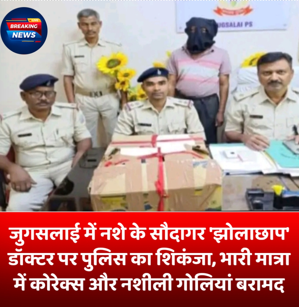 जमशेदपुर | शहर में नशे के अवैध कारोबार और युवाओं को नशे की लत में धकेलने वाले गिरोहों के खिलाफ जमशेदपुर पुलिस ने एक और बड़ी सफलता हासिल की है। जुगसलाई थाना क्षेत्र के गौरी शंकर रोड स्थित पटनिया मोहल्ला में छापेमारी कर पुलिस ने एक तथाकथित ‘झोलाछाप’ डॉक्टर को गिरफ्तार किया है, जो क्लिनिक की आड़ में प्रतिबंधित नशीली दवाओं का धंधा चला रहा था।