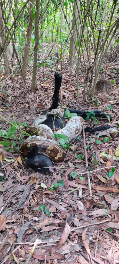 जब एक बकरी के चिल्लाने की आवाज मिली तो कुत्ता आने की आशंका पर सभी लोग इधर-उधर तलाश करने लगे। कुछ ही दूरी पर एक बच्चे की नजर उस अजगर पर पड़ी जो एक बकरी को लपेटकर खाने का प्रयास कर रहा था। इसके बाद बच्चे ने लाठी से पीटकर अजगर को भगाना चाहा लेकिन टस से मस नहीं हुआ। फिर बाकी अन्य चरवाहों को बुलाने पर सभी ने मिलकर उसपर पत्थर चलाया और भगाया। हालांकि तब तक बकरी की मौत हो चुकी थी। इस संबंध में विष्णु गोप ने बताया झुंड में कुल 53 बकरियां थीं और उसमें से एक को अजगर ने शिकार बनाया। उस बकरी की कीमत करीब 7 हजार रुपए होती।