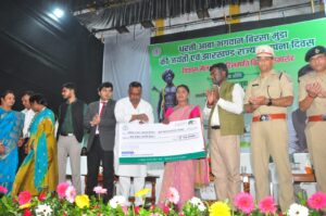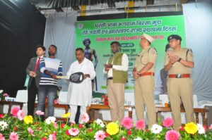 जिला दण्डाधिकारी सह उपायुक्त श्री मंजूनाथ भजन्त्री ने धरती आबा भगवान बिरसा मुंडा को उनकी जयंती पर नमन करते हुए राज्य स्थापना दिवस की सभी को शुभकामनायें दी। अपने संबोधन में कहा कि राज्य सरकार के दिशा निर्देशानुसार जिला प्रशासन दूरस्थ- ग्रामीण क्षेत्र के लोगों तक कल्याणकारी योजनाओं का लाभ पहुंचाने हेतु प्रयत्नशील है । आगामी 24 नवंबर से 26 दिसबंर तक ‘आपकी योजना आपकी सरकार आपके द्वार’ कार्यक्रम के माध्यम से सरकार की योजनाओं का लाभ सुदूर व दुर्गम क्षेत्रों में निवासरत लोगों तक पहुंचाने का कार्य किया जायेगा। इस योजना के तहत जिले के हर एक पंचायत में शिविर लगाया जाएगा। इस कार्यक्रम में ग्रामीणों की समस्याओं व उनकी परेशानियों का निष्पादन किया जाएगा।