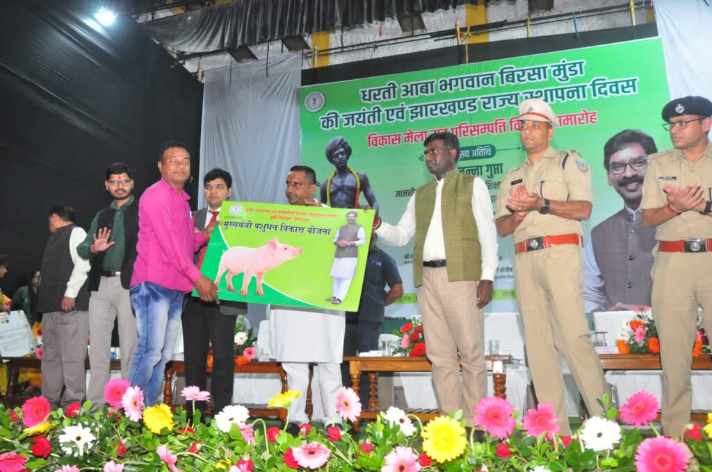 इस अवसर पर सरकार के विभिन्न लोक कल्याणकारी योजनाओ के लाभुकों के बीच माननीय मंत्री एवं जिला दण्डाधिकारी सह उपायुक्त तथा वरीय पुलिस अधीक्षक द्वारा 11 करोड़ 20 लाख रूपए से ज्यादा की परिसंपत्ति का वितरण किया गया । जेएसएलपीएस से स्वयं सहायता समूहों को फुलो झानो आशीर्वाद योजना, रिवॉल्विंग फंड, क्रेडिट लिंकेज, आपूर्ति विभाग द्वारा सोना सोबरन धोती साड़ी योजना के तहत धोती/ लुंगी- साड़ी का वितरण, नगर निकायों द्वारा DAY NULM के तहत महिला समिति को एसएचजी क्रेडिट लिंकेज तथा पीएम स्वनिधि का लाभ, रिवॉल्विंग फंड, पशुपालन विभाग की ओर से मुख्यमंत्री पशुधन विकास योजना, गव्य विकास विभाग द्वारा दुघारू गाय योजना, साथ ही केसीसी, मुद्रा लोन, मत्स्य विभाग द्वारा प्रधानमंत्री मत्स्य संपदा योजना, पंचायती राज विभाग से पंचायत ज्ञान केन्द्र, डीआरडीए से बाबा साहेब भीम राव अंबेडकर आवास, मनरेगा, आईटीडीए से वन पट्टा का वितरण, सीएमईजीपी, बिरसा आवास योजना का स्वीकृति पत्र, पोस्ट मैट्रिक स्कोलरशिप, खेलो झारखंड में उत्कृष्ट प्रदर्शन करने वाले बच्चों को सम्मानित किया गया। वहीं स्वास्थ्य विभाग द्वारा आयुष्मान कार्ड का वितरण, एमएमडीपी किट, सामाजिक सुरक्षा विभाग द्वारा सर्वजन पेंशन की स्वीकृति, समाज कल्याण से सावित्री बाई फुले किशोरी समृद्धि योजना, कृषि विभाग से पंपसेट का वितरण कुल 110 से ज्यादा लाभुकों को व्यक्तिगत एवं सामूहिक रूप से परिसंपत्ति का वितरण किया गया ।