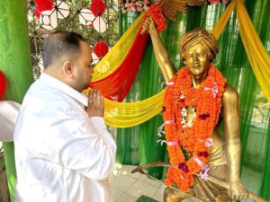 जमशेदपुर : झारखंड स्थापना दिवस सह भगवान बिरसा मुंडा की 148 वीं जयंती के अवसर पर लौहनगरी जमशेदपुर की सामाजिक संस्था लोक समर्पण के अध्यक्ष ललित दास ने ओल्ड सीतारामडेरा स्थित भगवान बिरसा मुंडा के मंदिर में बिरसा मुंडा की प्रतिमा पर माल्यार्पण कर नमन किया।