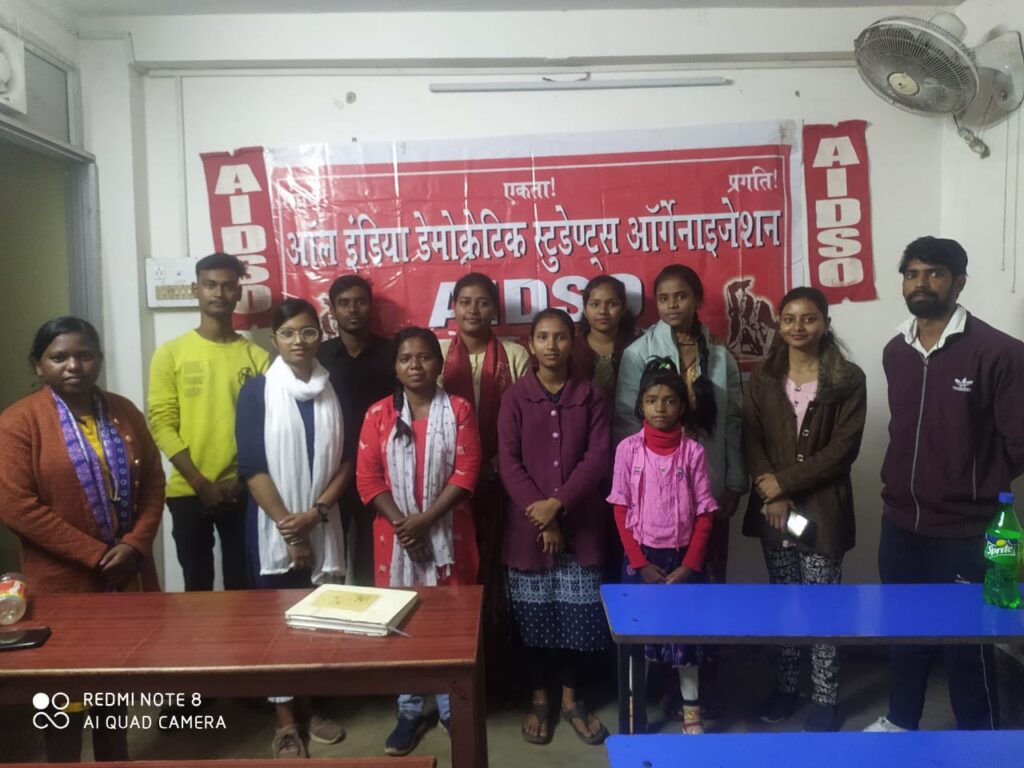 जमशेदपुर : ऑल इंडिया डेमोक्रेटिक स्टुडेंट्स ऑर्गेनाइजेशन जमशेदपुर नगर कमिटी की ओर से एआईडीएसओ का 70वां स्थापना दिवस मर्यादापूर्वक मनाया गया। संगठन के झारखंड राज्य उपाध्यक्ष रिंकी बंसरियार ने सभा को संबोधित किया। उन्होंने कहा कि एआईडीएसओ अपने स्थापना काल से ही जनवादी धर्मनिरपेक्ष और वैज्ञानिक शिक्षा की मांग को लेकर छात्रों को संगठित करने का काम कर रहा है। आज झारखंड ही नहीं देश के सभी राज्यों में संगठन छात्रों की समस्याओं को लेकर आंदोलन संगठित कर रहा है। छात्र और शिक्षाप्रेमियों की यह लड़ाई सिर्फ शिक्षा बचाने की ही लड़ाई नहीं है, बल्कि सभ्यता और इंसानियत बचाने की भी लड़ाई है। प्राथमिक शिक्षा से लेकर उच्च शिक्षा की बदहाली अपने चरम पर है।