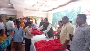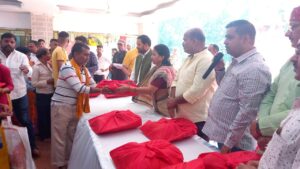 जमशेदपुर : छठ महापर्व को लेकर लौहनगरी जमशेदपुर वासियों में गजब का उत्साह नजर आ रहा है। लोग अपने-अपने तरीके से छठ महापर्व में सहयोग कर पुण्य के भागी बन रहे हैं। सेवा के इसी क्रम में लोक आस्था एवं सूर्य उपासना के महापर्व छठ पूजा के अवसर पर सूर्य मंदिर समिति के द्वारा विभिन्न क्षेत्र के जरुरतमंद छठ व्रतधारियों के बीच निःशुल्क छठ पूजन सामग्री का वितरण किया गया। शनिवार को सिदगोड़ा स्थित सूर्य मंदिर परिसर में आयोजित कार्यक्रम में समिति के संरक्षक चंद्रगुप्त सिंह, पूर्व मुख्यमंत्री रघुवर दास की धर्मपत्नी रुक्मणि देवी, अध्यक्ष भूपेंद्र सिंह समेत कई वरीय सदस्यगण एवं पदाधिकारी मुख्यरूप से शामिल हुए एवं ग्यारह सौ व्रतधारियों व उनके परिजनों के बीच फल सामग्री व पूजन सामग्री का वितरण किया। सूर्य मंदिर समिति द्वारा व्रतधारियों के बीच पूजन सामग्री का कूपन पूर्व में ही आवंटित किया गया था। कूपन के अतिरिक्त मंदिर में आये दर्जनों जरूरतमंद व्रतधारियों को सम्पूर्ण पूजन सामग्री प्रदान की गई।
