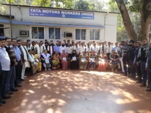 जमशेदपुर : टाटा मोटर्स वर्कर्स यूनियन के द्वारा यूनियन परिसर में विदाई सह सम्मान समारोह आयोजित की गई। कंपनी से सेवानिवृत्त हुए कुल 25 कर्मचारियों को यूनियन के अध्यक्ष गुरमीत सिंह के हाथों स्मृति चिन्ह एवं शॉल भेंटकर सम्मानित किया गया। सभी सेवानिवृत्त कर्मी अपनी धर्मपत्नी के संग कार्यक्रम में शिरकत किये।