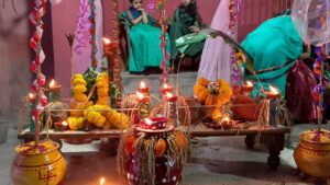 उन्हे अच्छा और सुंदर वर की प्राप्ति होती है, कल अर्ध रात्रि को इस पूजन का प्रारंभ भाजपा के पूर्व जिला अध्यक्ष दिनेश कुमार ने दीप प्रज्ज्वलित कर किया, उसके बाद विधि विधान के साथ पूजन पद्धति संपन्न हुई।