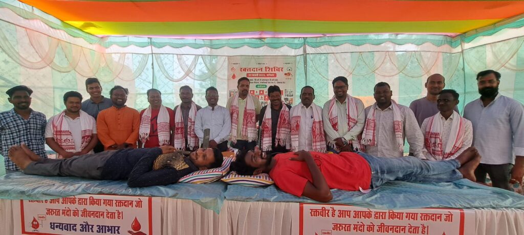 जमशेदपुर : शंकोसाई स्थित लाको बोदरा मैदान में एक दिवसीय रक्तदान शिविर का आयोजन आदिवासी हो समाज युवा महासभा पूर्वी सिंहभूम और आदिवासी हो समाज समिति शंकोसाई के तत्वाधान में किया गया था,जिसमे 70 यूनिट रक्त साग्रह किया गया, जिसमें मुख्य अतिथि के रूप में वर्तमान विधायक पश्चिम विधानसभा सरयू राय जी को आमंत्रित किया गया था रक्तदान शिविर का मुख्य उद्देश्य था कि समाज एवं लोगों में रक्तदान के प्रति जागरूक करना साथ ही जमशेदपुर ब्लड बैंक के रक्त कोष में रक्त की संख्या को बढ़ाने के उद्देश्य को लेकर भी की गई थी। साथ ही इस कार्यक्रम में सभी रक्तदाताओं को पारंपरिक बेंटा, गिफ्ट और प्रशस्ति पत्र देकर सम्मानित किया गया।