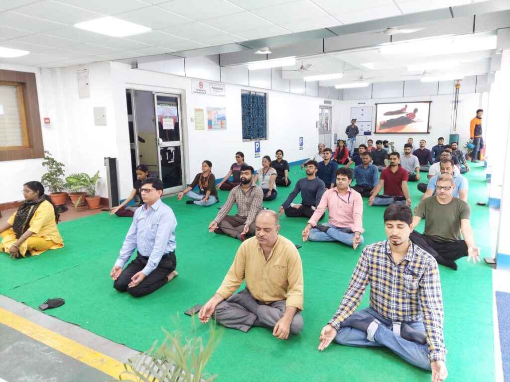 जमशेदपुर : अंतर्राष्ट्रीय योग दिवस के अवसर पर इलेक्ट्रिकल मेन्टेन्स जेडीसी के एसएचई सब कमेटी द्वारा एमईड इलेक्ट्रॉनिक्स बिल्डिंग बेसमेंट पर योग अभ्यास किया गया। योगाभ्यास के लिए हमारे प्रशिक्षक के रूप में सीएस प्रसाद एवं अंजली कुमारी ल (एमईड इलेक्ट्रिकल सहकर्मी) उपस्थित थे। इस कार्यक्रम में इलेक्ट्रिकल मेंटेनेंस के महिला कर्मचारियों ने भी बढ़ चढ़कर हिस्सा लिया। कार्यक्रम के अंत में जेडीसी चेयरमैन राकेश कुमार सिंह के द्वारा संबोधन तथा अरुण कुमार सिंह द्वारा धन्यवाद देकर समाप्त किया गया। इस कार्यक्रम को सफल बनाने में एसएचई सब कमेटी के संयोजक अरुण कुमार, सहसंयोजक बृजेश कुमार पांडे, ऋषभ कुमार सिंह, सयोनी मित्रा, रीवा कुमारी, नित्यानंद सिंह, रिताम सामंता, रोहित कुल्लर, इला सरकार, सुशीला देवी तथा रमा शंकर सिंह सदस्यों का महत्वपूर्ण योगदान था। इस कार्यक्रम में विभागीय कमेटी मेंबर रमेश कुमार सिंह, सरफराज आलम, विशाल सोनी एवं श्याम सुंदर गोप उपस्थित थे।