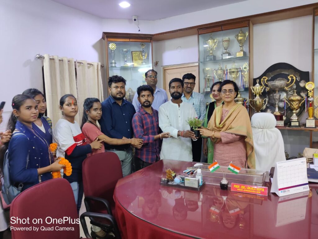जमशेदपुर : छात्र आजसू के कोल्हान अध्यक्ष हेमंत पाठक के नेतृत्व में दर्जनों छात्राओं ने महिला विश्वविद्यालय की कुलपति प्रो डॉ अंजिला गुप्ता को फूल का पौधा देकर सम्मानित किया और डीएसडब्ल्यू, कुलसचिव प्रोक्टर सभी को छात्राओं ने माला पहना कर धन्यवाद दिया। आजसू के अध्यक्ष हेमंत पाठक ने कहा आजसू छात्र संघ ने इंटरमीडिएट में नामांकन और इंटरमीडिएट को इस कॉलेज में बचाए रखने का आंदोलन शुरू किया यहां तक कि परिसर में मारपीट की घटना भी हुई परंतु आजसू छात्र संघ और छात्राओं ने हार नहीं माना और निरंतर सरकार पर आंदोलन का दवाब ,माननीय विधायक सरयू राय का दवाब और कुलपति मेडम का सकारात्मक सोच छात्राओं के निहित आया , छात्राओं ने अपनी एकता का परिचय दिया और आज पहले से पढ़ रहे 3000 छात्राओं के साथ नए सत्र में नामांकन लेने के अभिलाषी हजारों छात्राओं ने भी राहत ही सांस ली है इसके लिए उच्च शिक्षा विभाग के डायरेक्टर सूरज कुमार को भी आजसू छात्र संघ धन्यवाद देता है छात्र आंदोलन हमेशा से ही छात्रों के भविष्य को ध्यान में रखते हुए आजसू करता आया है और आगे भी करता रहेगा आजसू छात्र संघ कुलपति महोदया से कहा की जहा भी महिला विश्वविद्यालय को आजसू छात्र संघ की सहायता की आवश्यकता होगी तो आजसू छात्र संघ का एक कार्यकर्ता हमेशा अपने साथ खड़ा रहेगा। इस मौके पर जगदीप सिंह, कुंदन यादव, साहेब बगती, दीक्षा कुमारी, शीतल कुमारी, अभिषेक दुबे, लखी कुमारी, पूनम महतो, अनीशा महतो, मोनालिशा, पायल कुमारी, रजनी, पूनम कुमारी, तनु कुमारी, आशा कुमारी, दिशा कुमारी, अंशु शर्मा इत्यादि उपस्थित थे।