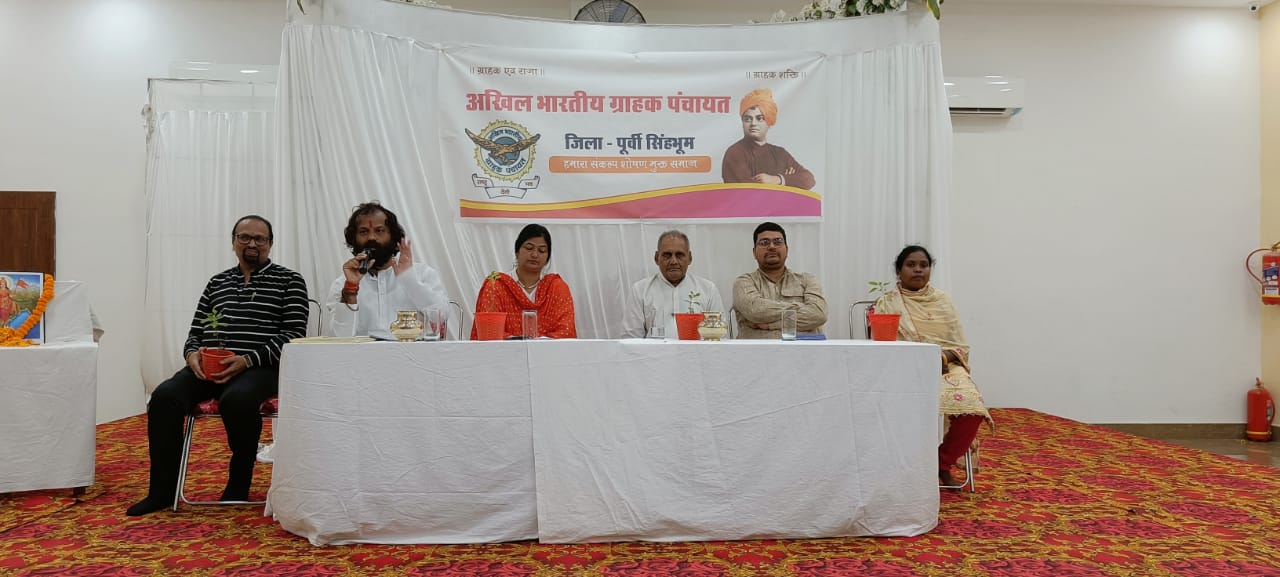 जमशेदपुर : अखिल भारतीय ग्राहक पंचायत पूर्वी सिंहभूम झारखंड की पहली बैठक खासमहल, जुगसलाई के श्रीमहल सभागार में आयोजित की गई। इसमें संस्था के प्रांत संयोजक शिवाजी क्रांति, आदरणीय आनंद तुलसियान, आदरणीय आशुतोष भारती, शिक्षाविद डॉक्टर कल्याणी कबीर उपस्थित थे। कार्यक्रम का शुभारंभ दीप प्रज्वलित कर मां भारती के तस्वीर पर पुष्प अर्पित कर किया गया। सामूहिक गीत कवयित्री डोली परिहार ने प्रस्तुत किया।