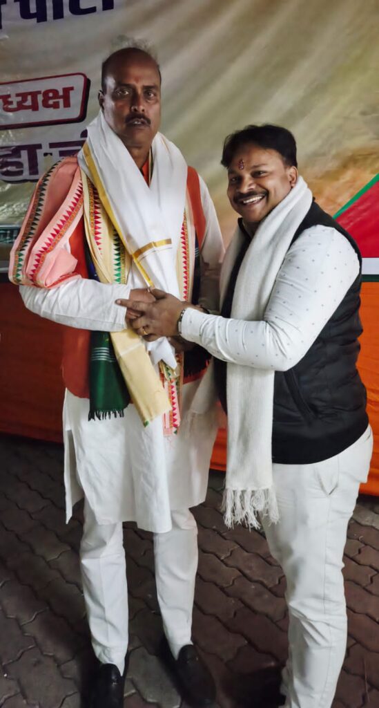 जमशेदपुर : भारतीय जनता पार्टी जमशेदपुर महानगर के जिला अध्यक्ष के रूप में संजीव सिन्हा के मनोनयन पर भाजपा सुंदरनगर के पूर्व मंडल अध्यक्ष अनमोल वर्मा “पप्पु” ने जिला कार्यालय साकची में पूर्व मण्डल अध्यक्ष विकास सिंह एवं सक्रिय कार्यकर्त्ताओं के साथ अंगवस्त्र देकर उन्हें हार्दिक बधाई एवं शुभकामनाएं दीं।