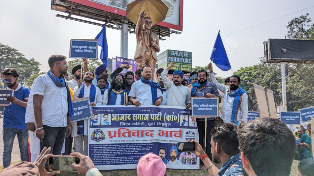 जमशेदपुर : आज़ाद समाज पार्टी एवं भीम आर्मी भारत एकता मिशन के द्वारा विरोध मार्च सह धरना प्रदर्शन किया गया, साकची अम्बेडकर चौक से बाबा साहब भीम राव अम्बेडकर की प्रतिमा पर माल्यार्पण कर विरोध मार्च निकाला गया एवं पूर्वी सिंहभूम कार्यालय के सामने विरोध प्रदर्शन किया गया, उसके बाद उपायुक्त के माध्यम से झारखंड के मुखमंत्री को 9 सूत्री मांगों को सौंपा गया।