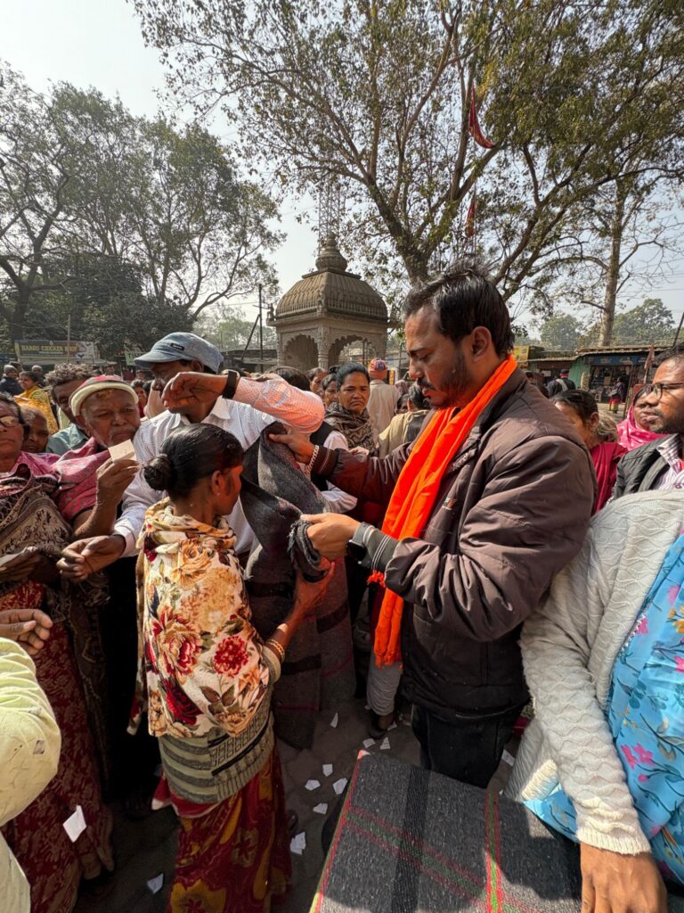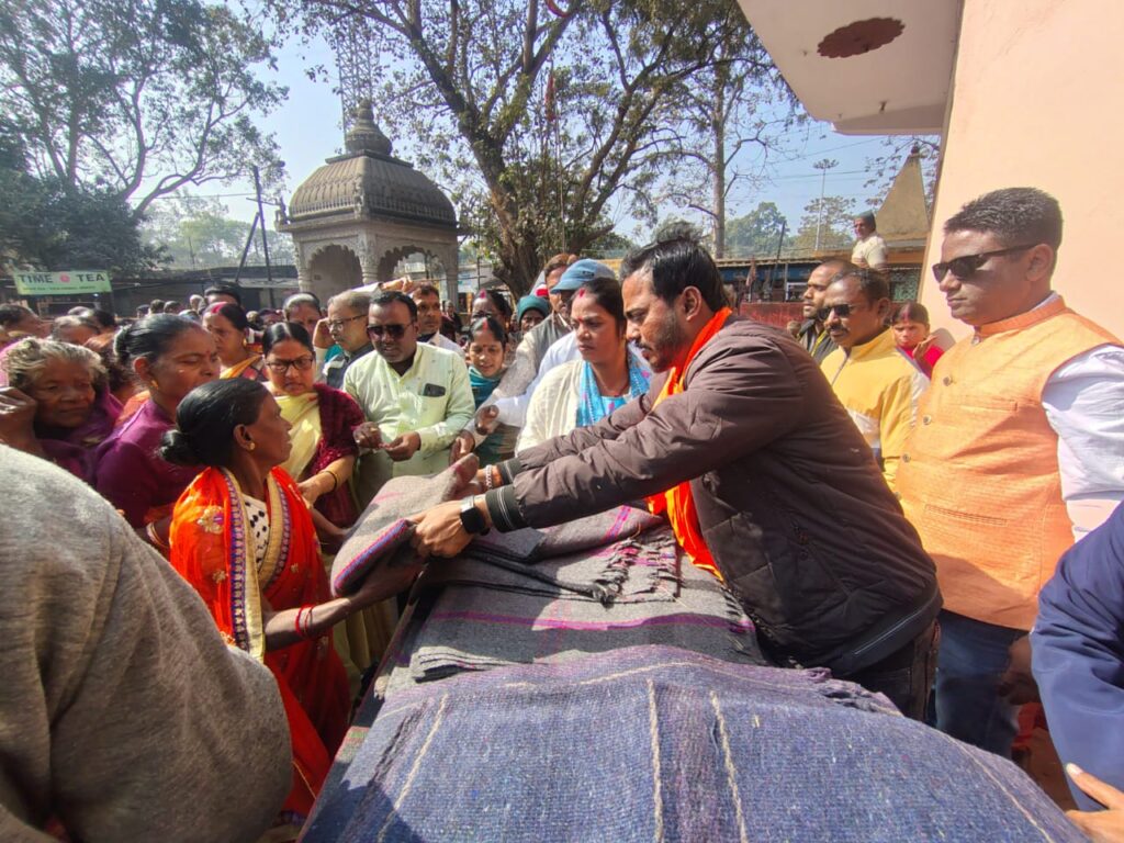 जमशेदपुर : बढ़ती हुई ठंड को देखते हुए बुधवार को जमशेदपुर के लोकप्रिय सांसद श्री विद्युत बरण महतो जी एवं जमशेदपुर पूर्वी की लोकप्रिय विधायक श्रीमती पूर्णिमा साहू जी के सहयोग से बागुनहांतु चौक स्थित काली मंदिर प्रांगण में तीन सौ जरूरतमंद लोगों के बीच कंबल वितरण किया गया भाजपा बारीडीह मंडल अध्यक्ष कुमार अभिषेक ने कहा कि इस बढ़ती हुई ठंड में हमारे जनप्रतिनिधि जरूरतमंदों के साथ खड़ी है और वैसे सभी जरूरतमंदों को कंबल दिया जाएगा जो कंबल के अभाव में खुले आसमान के नीचे सोने को मजबूर है इस दौरान काजू शांडिल,जीवन साहू,कंचन दत्ता,विजय साहू,रूप देवी, ओम पोद्दार,राम मिश्रा,अनिकेत रॉय,राजेश गोस्वामी, पुरण साहू,दिलीप मित्रा, मुक्ता नमता, मिनी सिंह,प्रमिला साहू,आरती यादव,कमला साहू, सरस्वती देवी, मप्पी दास मनोज कुमार,रोहित साहू आदि उपस्थित थे।