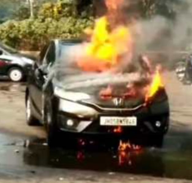 जमशेदपुर : टाटानगर रेलवे स्टेशन के मुख्य द्वार के बाहर शनिवार सुबह अचानक उस समय हड़कंप मच गया, जब सड़क किनारे खड़ी एक होंडा जैज़ कार (JH 05 BN 5846) देखते ही देखते आग की लपटों में घिर गई। सुबह के व्यस्त समय में काले धुएँ का गुबार और तेज़ होती लपटों ने यात्रियों को दहशत में डाल दिया, जिसके कारण कुछ देर के लिए स्टेशन के बाहर यातायात भी प्रभावित हो गया।