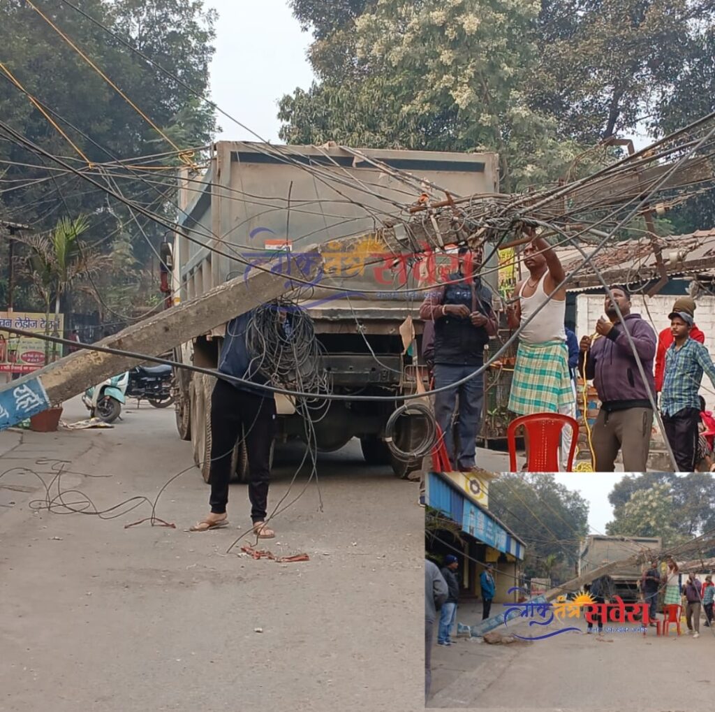 लोकतंत्र सवेरा : जमशेदपुर के परसुडीह थाना क्षेत्र अंतर्गत चांदनी चौक के पास एक हाइवा ने बिजली के पोल ने टक्कर मार दी जिससे बिजली का पोल बीच सड़क पर गिर गया. जिससे आने जाने वाले लोगों को काफी परेशानी का सामना करना पड़ रहा है. वो तो भगवान का लाख लाख शुक्र था. बिजली का पोल किसी के ऊपर नहीं गिरा नहीं तो हादसा बड़ा हो सकता था।