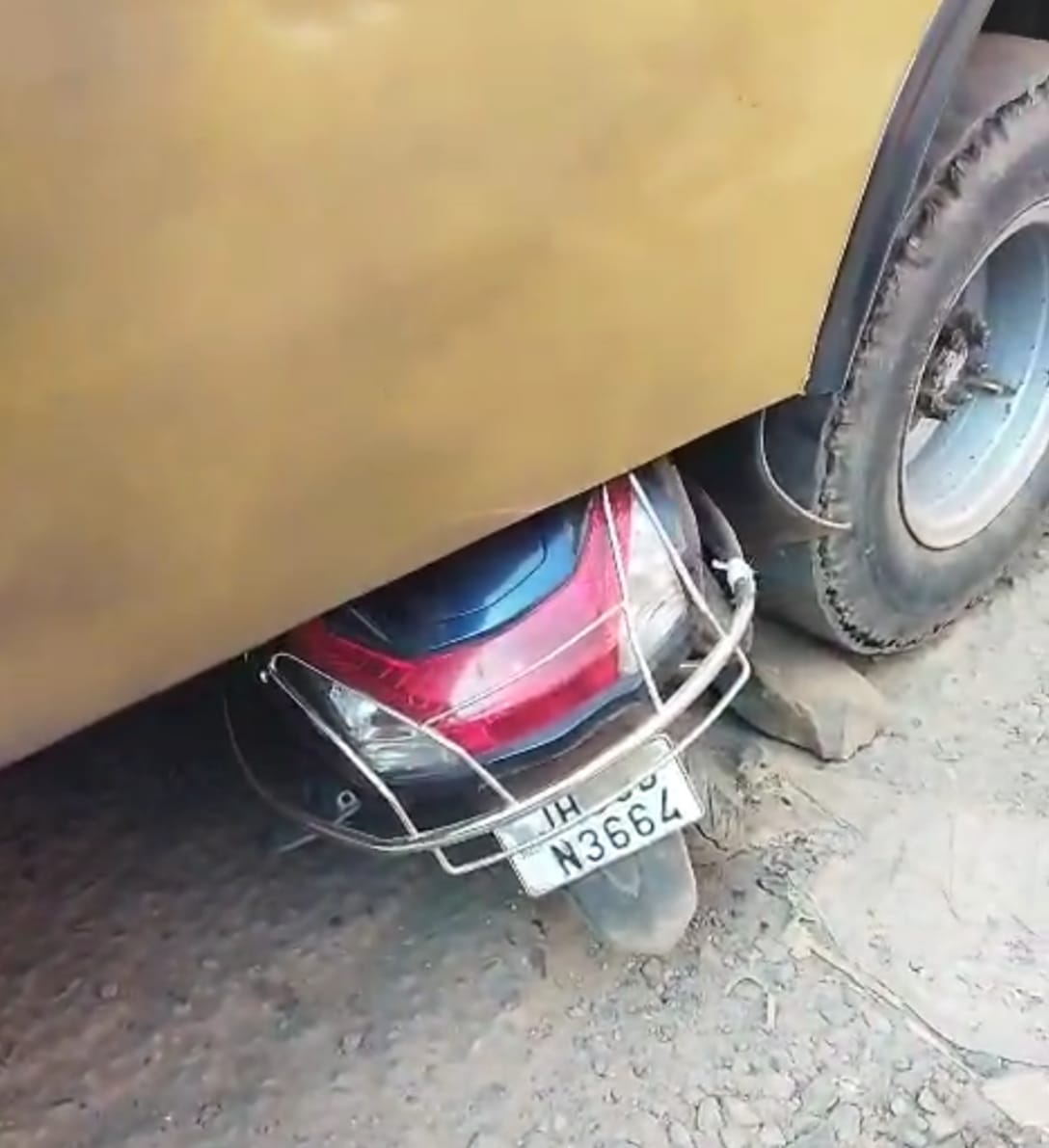 जानकारी के अनुसार रेलवे फाटक बंद होने के कारण राहरगोड़ा से साकची तक चलने वाली मिनी बस फटक के पास खड़ी थी। बस चालक हैंडब्रेक लगाकर बस से उतर गया। इसी दौरान बस पीछे ढलान की ओर लुढ़कने लगी जिससे बस के पीछे स्कूटी पर बैठी अंजली बस के नीचे आ गई और मौके पर ही उसकी मौत हो गई।