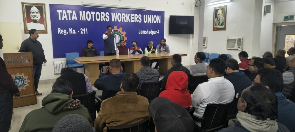 जमशेदपुर : टाटा मोटर्स वर्कर्स यूनियन के गोपेश्वर हॉल में यूनियन की कमेटी मीटिंग आयोजित की गई। जिसकी अध्यक्षता यूनियन के अध्यक्ष शशि भूषण प्रसाद ने किया। जबकि मीटिंग का संचालन अशोक उपाध्याय ने किया। मीटिंग में विषय प्रवेश महामंत्री आरके सिंह ने कराया। उन्होंने अपने संबोधन में कहा कि समय से ग्रेड कराने के लिए यूनियन वचनबद्ध है। मजदूर हित में जो भी सुझाव आएंगे उसपर नि: संदेह विचार किया जाएगा। उन्होंने आगामी ग्रेड समझौता के मध्य नजर सबों से सुझाव देने का अनुरोध किया। मीटिंग के दौरान उन्होंने कहा कि इस वर्ष तीन मार्च का आयोजन खास होने वाला है। एक ओर जहां भव्य रक्तदान का आयोजन बहुचर्चित है वहीं टाटा साहब के मूर्ति का यूनियन परिसर में अनावरण होगा। जिसके निर्माण में मजदूरों ने स्वेच्छा से अंशदान देना का निर्णय लिया है। अंत में धन्यवाद ज्ञापन अनिल शर्मा ने किया।