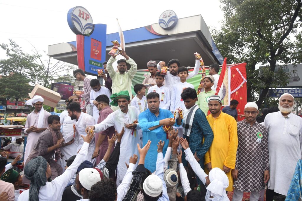 जमशेदपुर : साकची गोलचक्कर के समीप हर साल की तरह इस साल भी जशन-ईद-ए-मिलाद-उन-नबी के मौके पर मंगला हाट के सभी दुकानदारो और उनके परिवार की ओर से भव्य लंगर वितरण प्रोग्राम का आयोजन किया गया. इस मौके पर अध्यक्ष शाही आदिल के अलावा लाड़ला पप्पू, एमडी रफ़ी, एमडी आज़ाद, एमडी चाँद, सोनू, शेख अख़्तर, कनाई पुस्ती, विनोद कुमार, भोलू के अलावा मंगला हाट के सारे दुकानदार की उपस्थिति रही सभी ने समस्त देशवासियो को जशन-ईद-ए-मिलाद-उन-नबी की बहुत बहुत मुबारकबाद भी दिया।