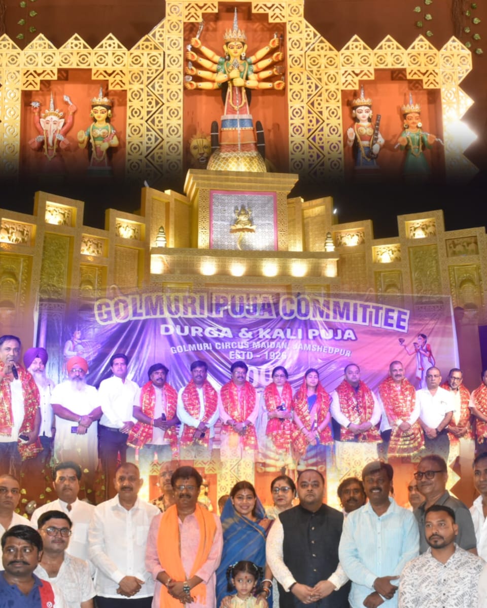100 वर्ष पूर्ण होने पर आज प्रथम दिन माता शैलपुत्री के पूजन के दिन से पंडाल के पट भक्तों और श्रद्धालुओं के लिए खोल दिए गए है। विधायक पूर्णिमा साहू ने कहा की पंडाल सामाजिक संदेश दे रहा है भ्रूण हत्या रोकथाम, ट्रैफिक सुरक्षा, महिला उत्पीड़न आदि समाज को चाहिए इस संदेश को घर घर पहुंचाए, अभय सिंह ने कहा की माता दुर्गा कृपा करे जमशेदपुर पर और बारिश बंद हो ताकि लोग पूजा में अपने परिवार के साथ माता का दर्शन कर सके,दिनेश कुमार ने अपने संबोधन में कहा की शक्ति और समृद्धि के लिए देवी दुर्गा की पूजा का एक भव्य उत्सव है, जो एकता और पारिवारिक संबंधों को मजबूत करता है। शिव शंकर सिंह ने भी कार्यक्रम को संबोधन किया। अध्यक्ष मनोज खत्री ने बताया की इस वर्ष पंडाल की भव्यता के साथ आकर्षक विद्युत सज्जा की गई है।