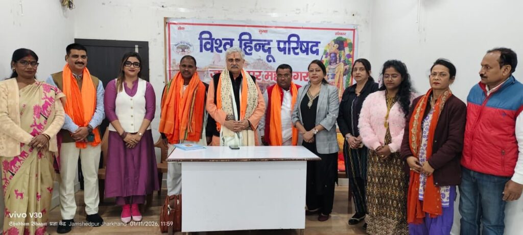 जमशेदपुर : विश्व हिंदू परिषद जमशेदपुर महानगर की ओर से बिष्टुपुर स्थित तुलसी भवन में धर्मरक्षा निधि समर्पण अभियान को लेकर एक महत्वपूर्ण बैठक का आयोजन किया गया। बैठक में विहिप झारखंड प्रांत अध्यक्ष चंद्रकांत रायपत मुख्य रूप से उपस्थित रहे।