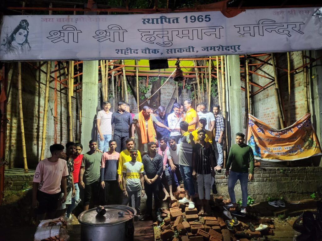 जमशेदपुर : साकची बसन्त टाकीज के सामने श्री श्री हनुमान मंदिर में सनातन उत्सव समिति द्वारा आहूत मंगल आरती के पूर्व संध्या पर हुई जोरदार बारिश में भींग रहे प्रभु हनुमान को तिरपाल ओढ़ा उन्हें भींगने से बचाने का प्रयास किया गया, उसके बाद भव्य पूजन सह महा आरती के बाद खीर वितरण किया गया।